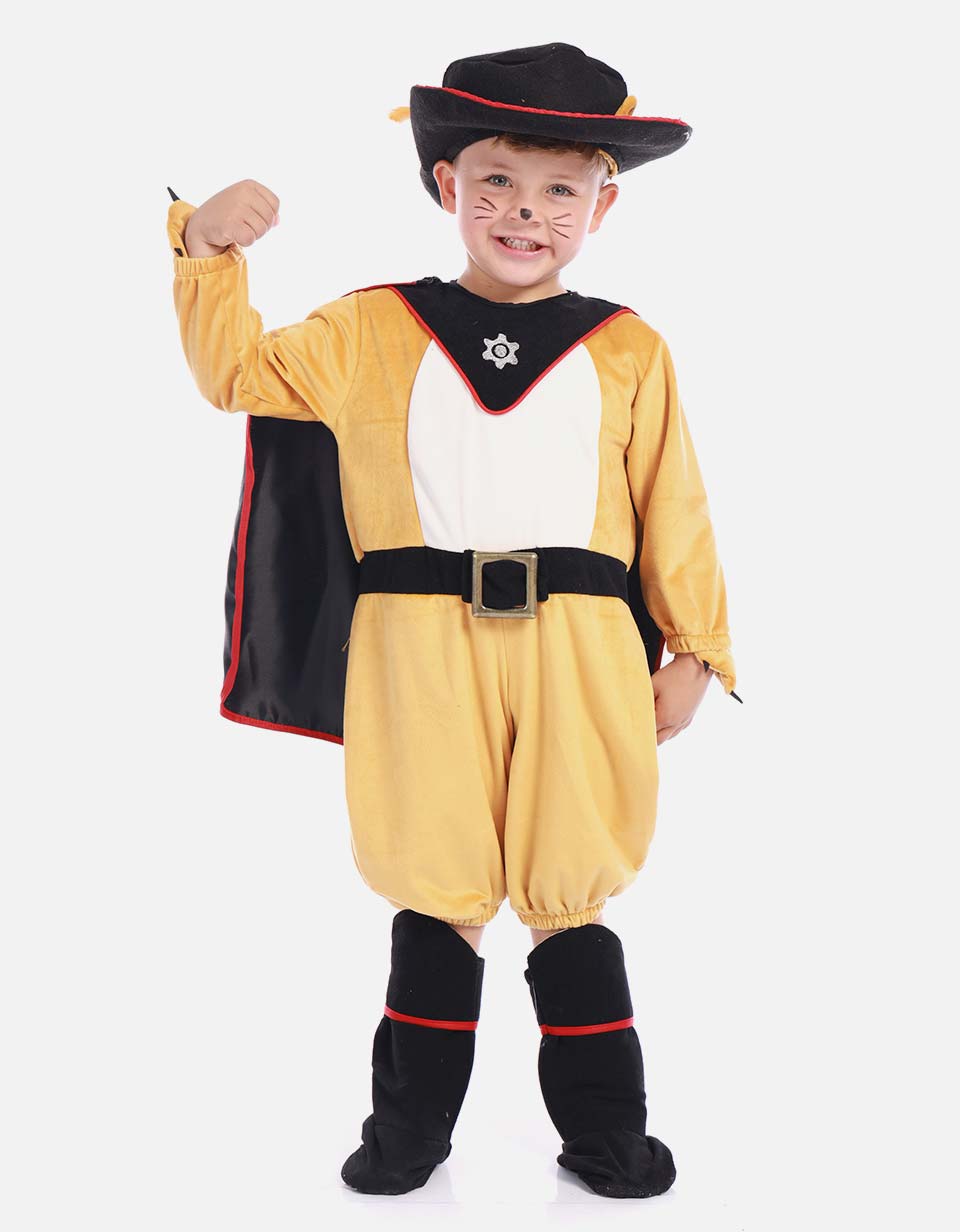 Viste a tu hijo como el icónico Gato con Botas. Incluye sombrero, capa, botas y traje. Ideal para que en este Halloween tu pequeño se sienta especial.