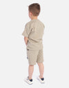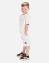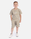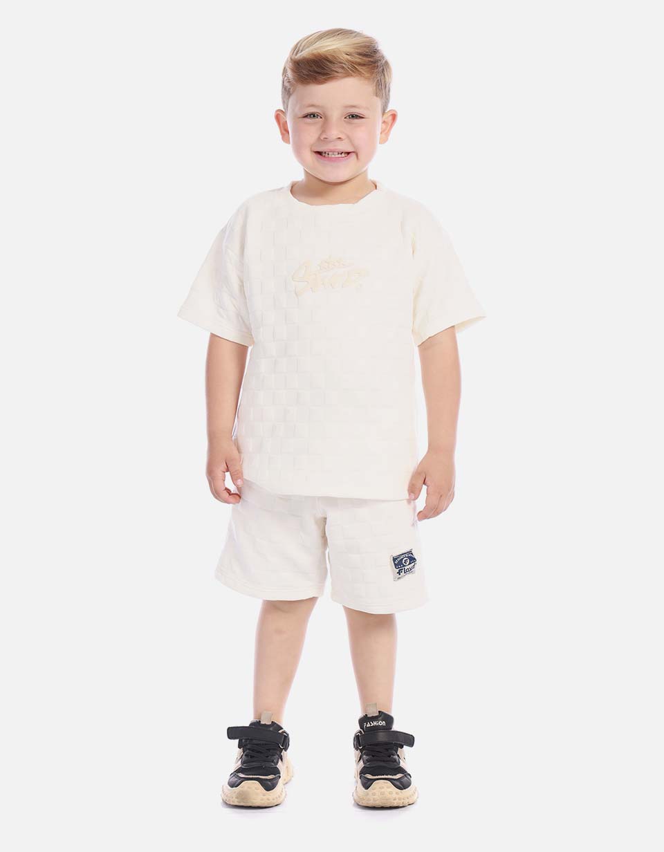 Este conjunto infantil está diseñado para ofrecer confort y estilo. Incluye camiseta de corte casual y short con ajuste cómodo, ideales para actividades deportivas, juegos o tiempo libre. Confeccionado en tela suave y resistente, es una prenda versátil que combina practicidad y moda.