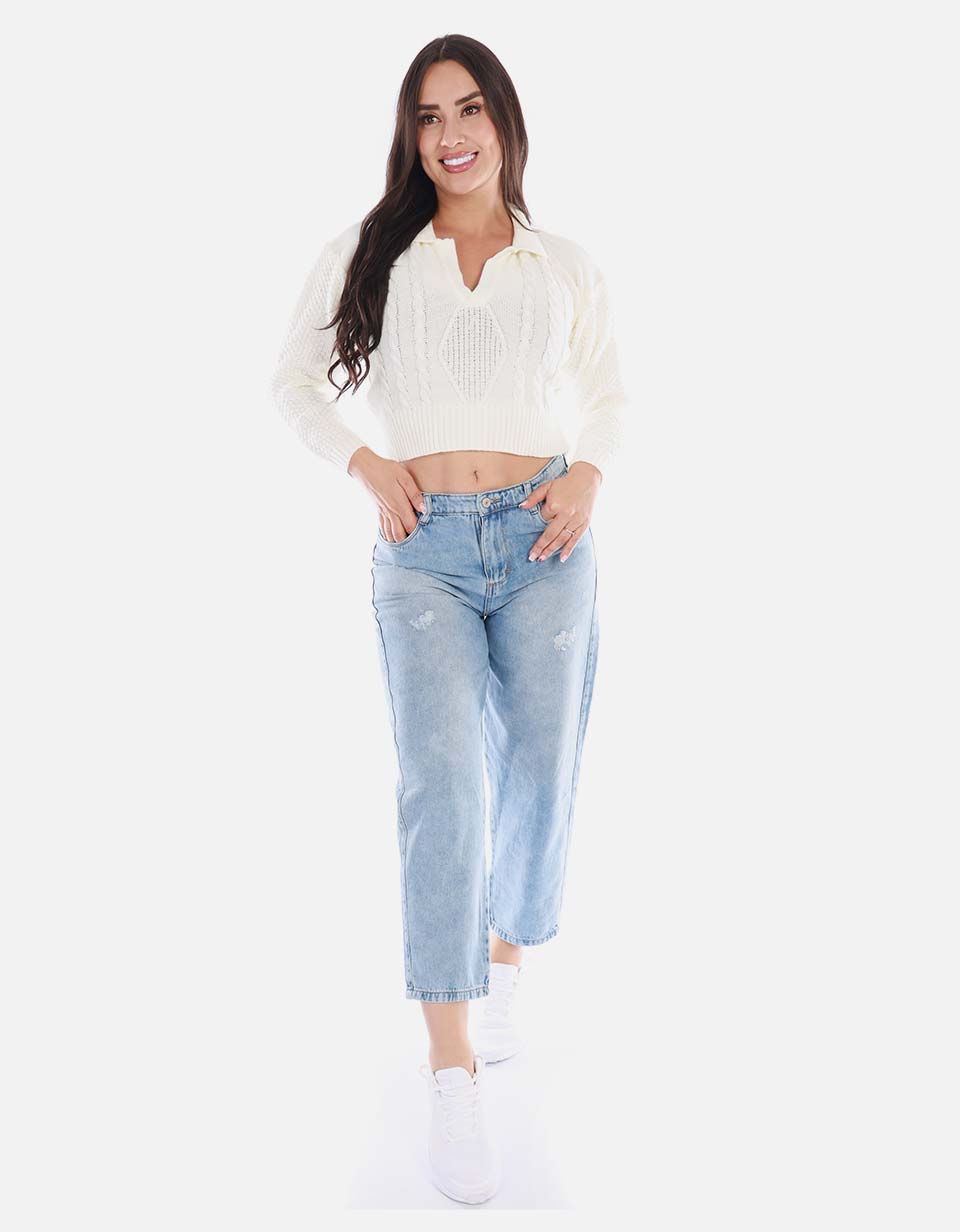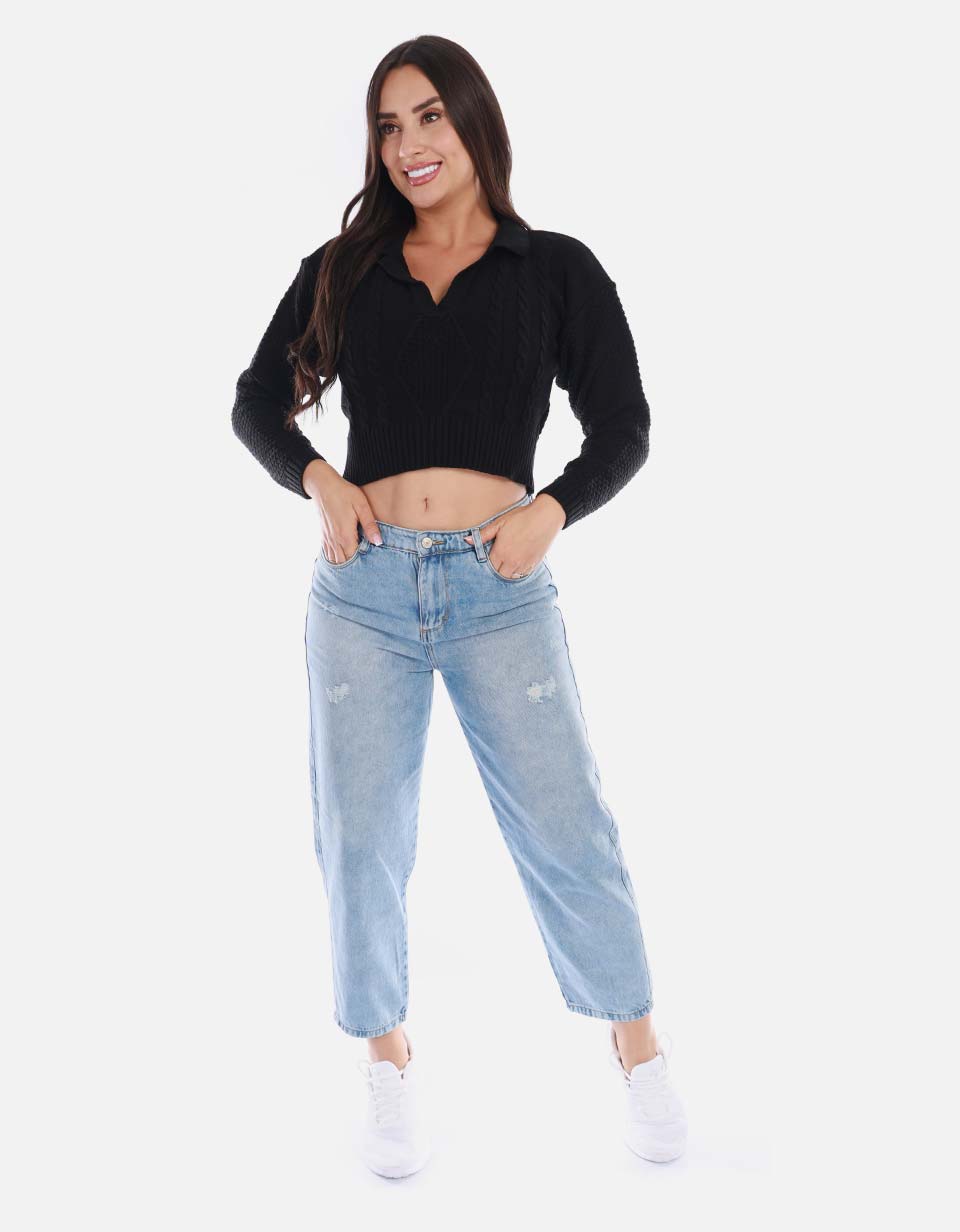 Buzo tipo polo tejido mujer