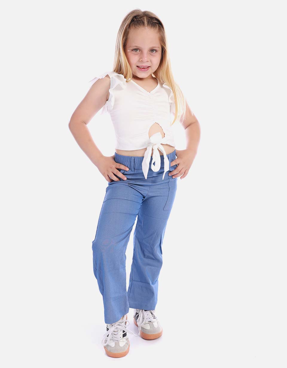 Este conjunto para niña incluye blusa y pantalón confeccionados en tela suave y transpirable. Perfecto para días activos, ofrece libertad de movimiento y frescura durante todo el día. Su diseño moderno y práctico lo convierte en una prenda ideal para uso diario o salidas casuales