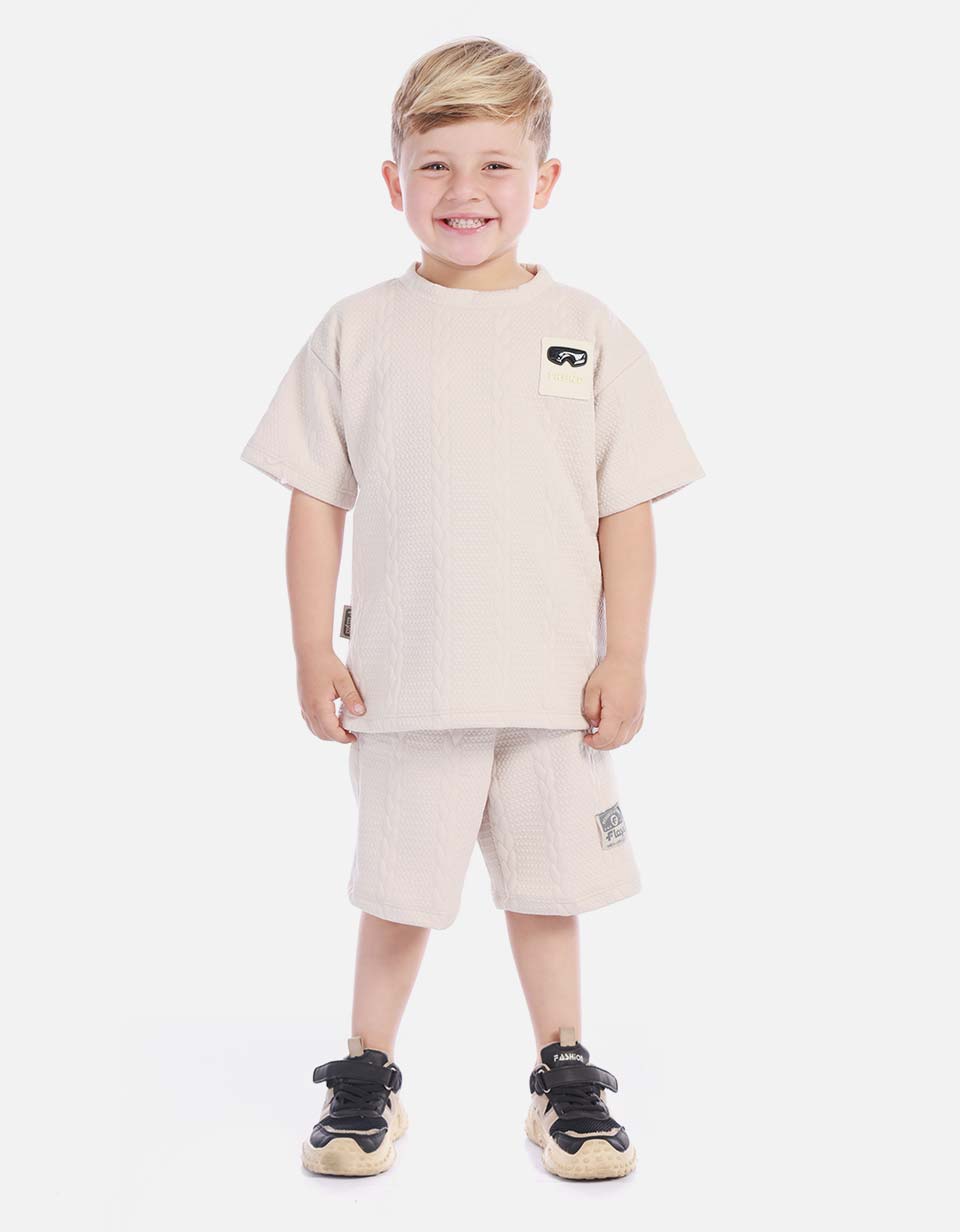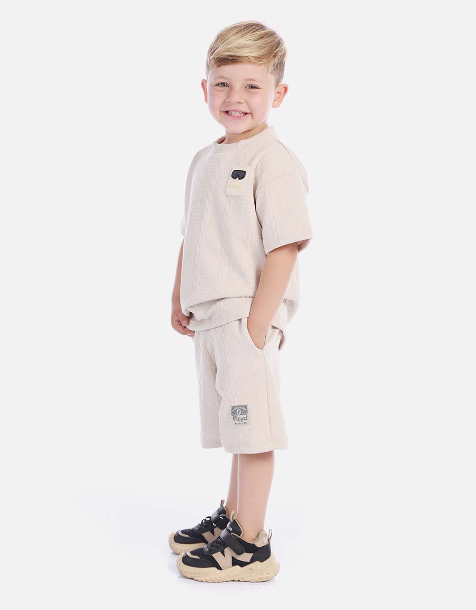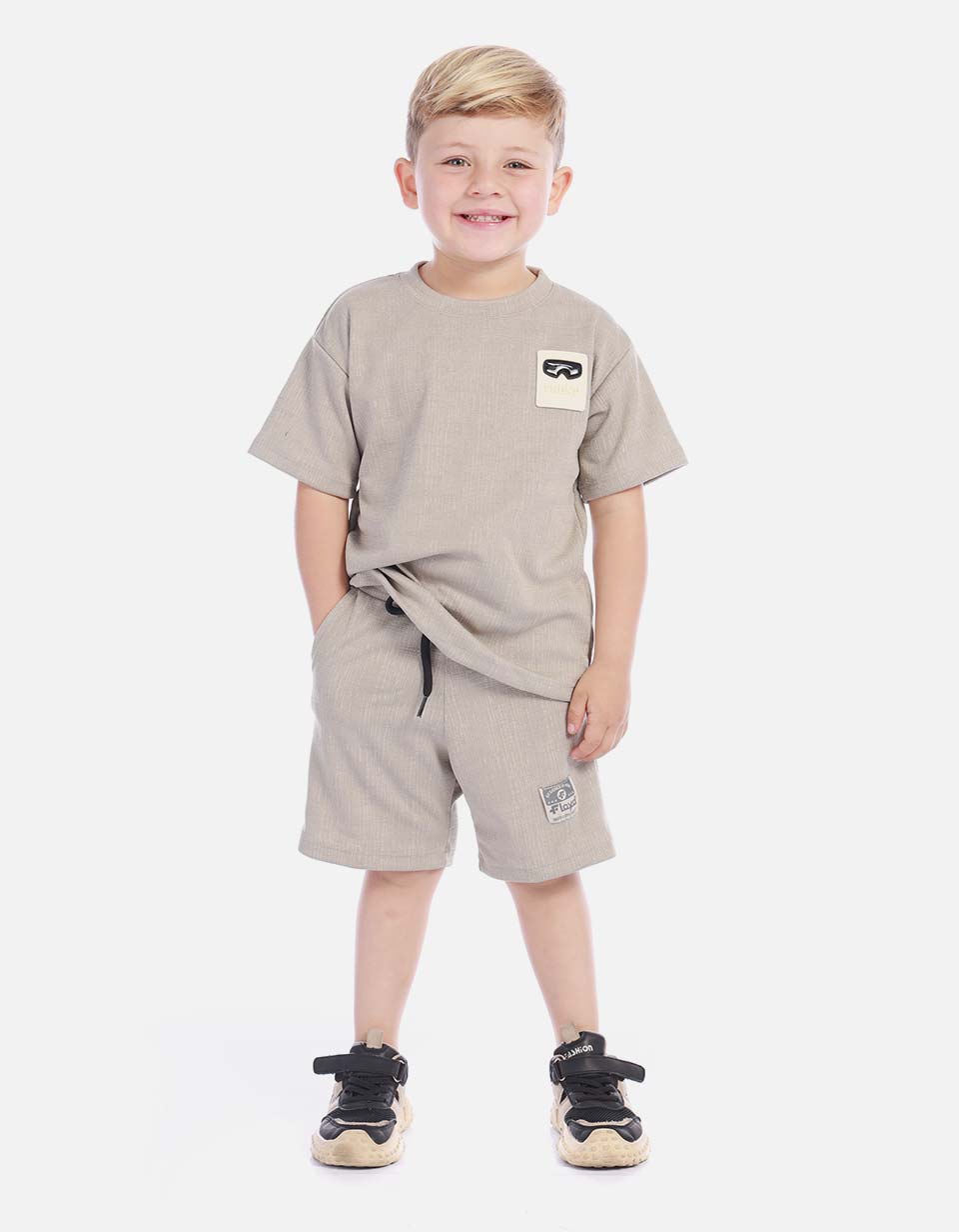 Este conjunto para niño ofrece un diseño ligero y moderno compuesto por camiseta y short de algodón de alta calidad. Garantiza frescura y comodidad en cada movimiento, siendo ideal para actividades cotidianas. Una opción práctica y duradera para que tu hijo luzca con estilo.