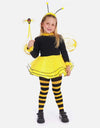 Transforma a tu pequeña en la princesa más icónica con este hermoso disfraz de avejita. Este conjunto incluye un vestido de colores vibrantes con detalles peludos, alas, una diadema con antenas, medias de abjeita y barita que hará que se sienta como en un cuento de hadas.