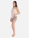 Pijama de dos piezas con diseño sin mangas y short corto que aporta libertad de movimiento. Su tela suave y transpirable la convierte en la elección perfecta para noches frescas y confortables.